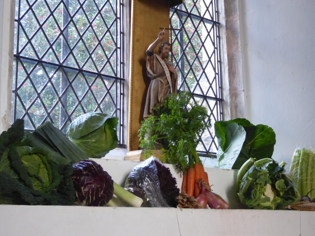 Our Harvest Mass took place on 28th September, and was very well attended. Fr. David officiated – we hope he enjoyed our proper, old-fashioned country service, and the fantastic array of high quality produce given to us by our local farmers. Afterwards, 18 bags of goodies were taken to pensioners in the village, and the remainder to local nursing- and care homes, which are always immensely grateful.